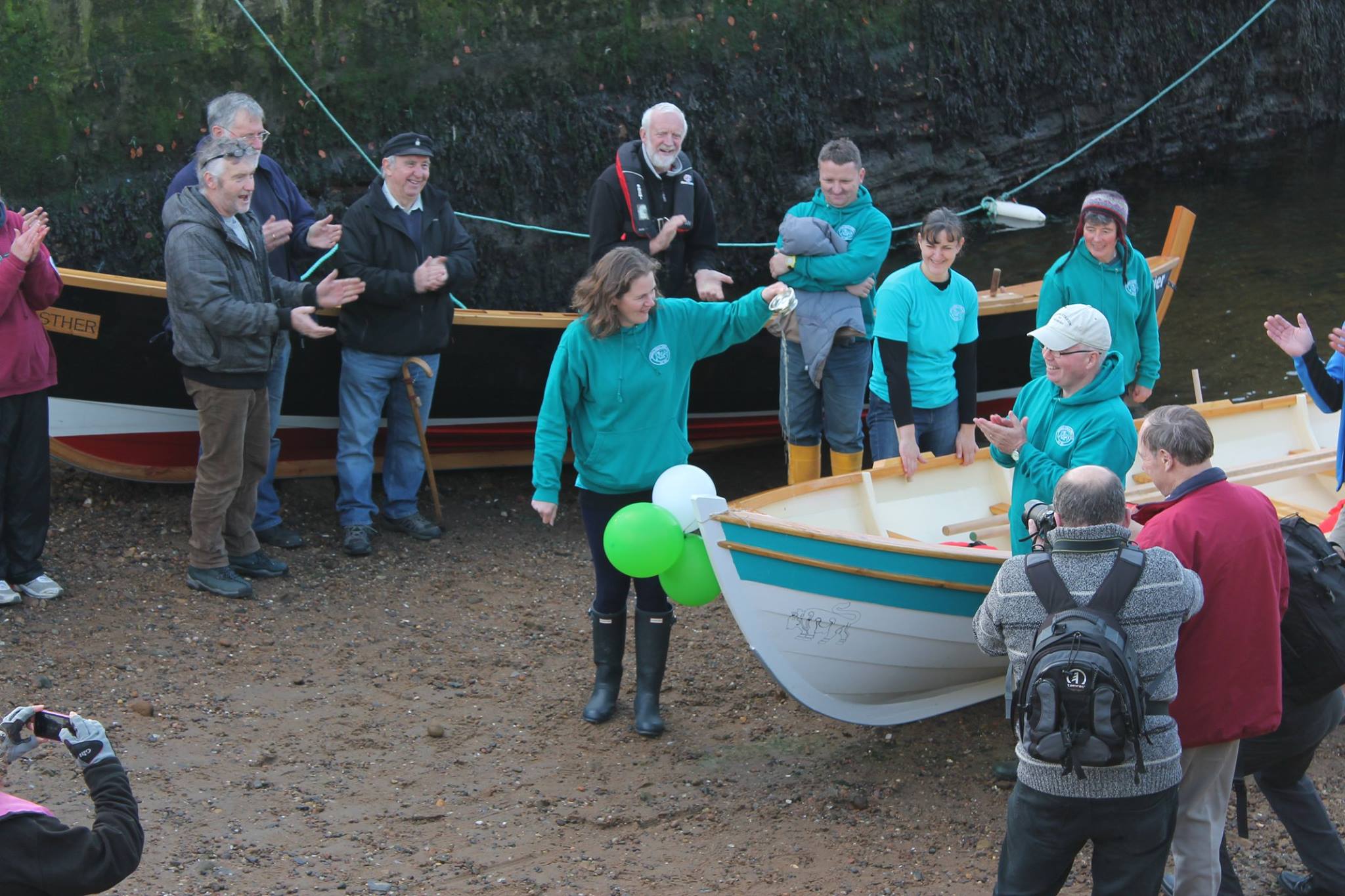 Club members gathered at the harbour along with those involved with the build, the local community and fellow Skiffies.