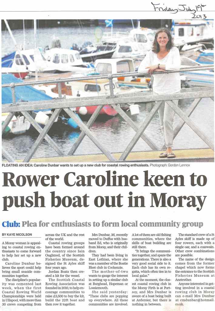 Caroline placed a piece in the local paper in July 2013, asking for interest in establishing Moray’s first coastal rowing club. A meeting was set up in Burghead for interested parties and from there the club was formed and the fundraising started.