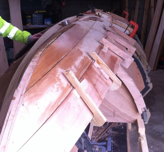 Using moulds and clamps we started to stick the planks together using epoxy resin.
