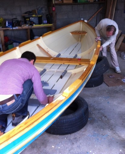 The boat gets turned and work starts on inside with the gunwales and seats plus lots more sanding!